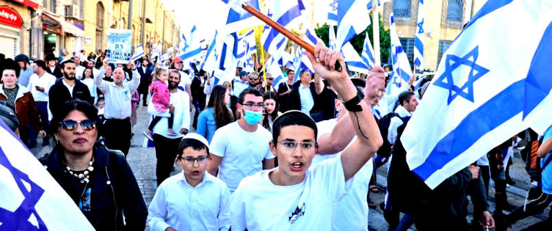 Menschen versammeln sich am Mittwoch zu einem rechtsgerichteten Marsch auf dem Safra-Platz in Jerusalem. Die Hamas sagt, Israel solle die volle Verantwortung für die Folgen der gefährlichen und provokativen Aktionen tragen