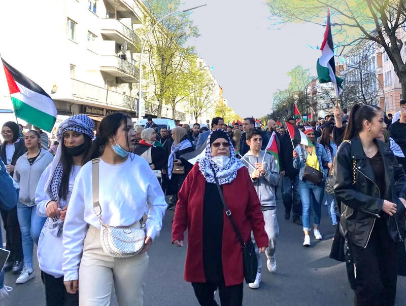 Anlässlich des Tages der palästinensischen Gefangenen organisierte Samidoun Deutschland eine Massendemonstration in den Straßen von Berlin, an der zahlreiche palästinensische und arabische Jugendliche sowie Vertreter der deutschen linken Parteien und Solidaritätsorganisationen teilnahmen. Die Großdemonstration startete am Rathaus Neukölln und zog durch die Sonnenallee, eine Straße mit vielen arabischen und palästinensischen Geschäften und Restaurants und ein zentraler Treffpunkt für die Gemeinschaft.