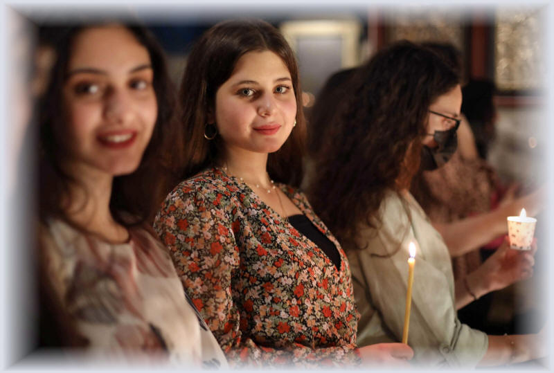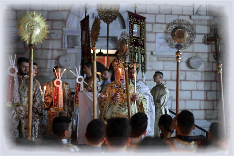 Palästinensische Christen in Gaza feierten den Karsamstag in der Osternacht in der St. Porphyrios-Kirche in Gaza-Stadt. (Foto: Mahmoud Ajjour, Palästina-Chronik) - Von Mitarbeitern der Palästina-Chronik