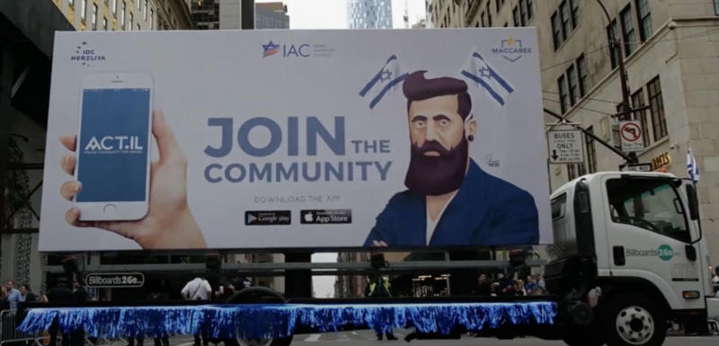 Das Kernstück der Initiative war eine App namens Act.IL, die den Nutzern "Missionen" zuweist, um gegen Artikel und Beiträge in sozialen Medien vorzugehen, die als israelkritisch und/oder die Boykottbewegung unterstützend angesehen werden; Erdan nannte das neue Projekt einen "Eisernen Dom der Wahrheit" und "einen echten Wendepunkt bei der Online-Verteidigung Israels und der Veränderung des Narrativs". Auf der New Yorker Parade zeigte ein Wagen, der für die App warb, ein Handy mit dem Logo von Act.IL neben einer Darstellung von Theodor Herzl, dem Vater des modernen Zionismus, als Hipster, der - warum auch immer - ein Paar israelische Flaggen auf dem Kopf trug.