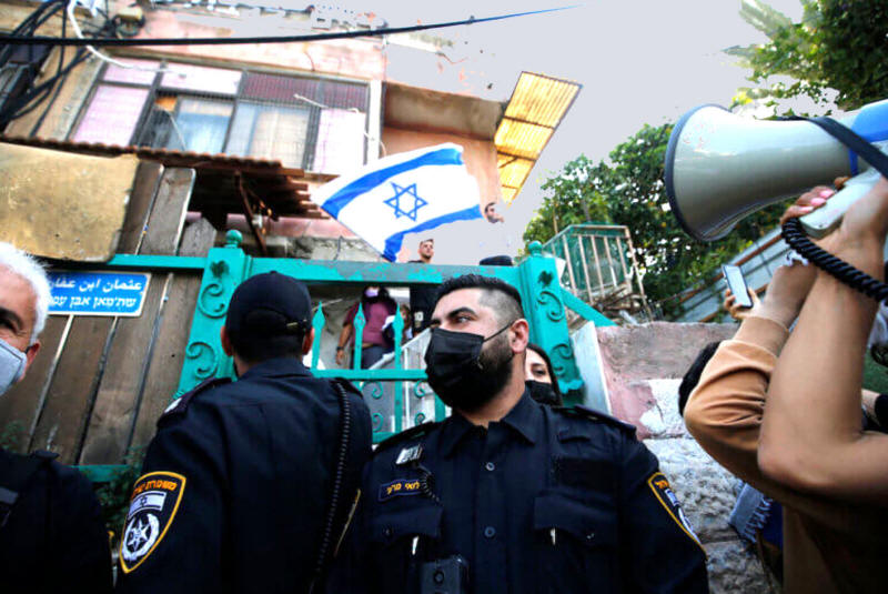 Israelische Streitkräfte schützen israelische Siedler vor einem Haus im palästinensischen Viertel Sheikh Jarrah im besetzten Ostjerusalem am 16. April 2021. (Foto: Jamal Awad)