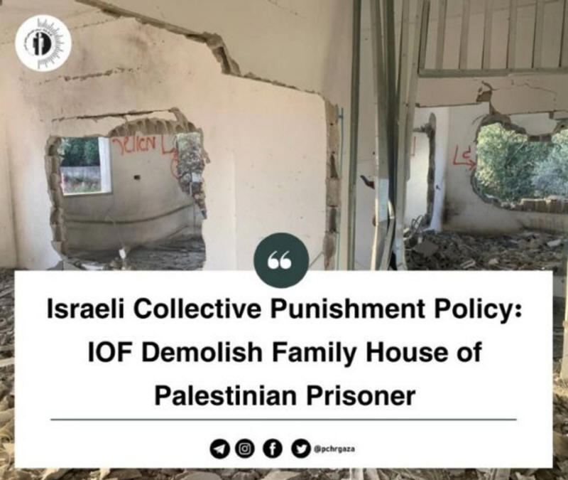 PCHR: “Israelische kollektive Bestrafungspolitik: Die IOF zerstörte das Familienhaus des palästinensischen Gefangenen”