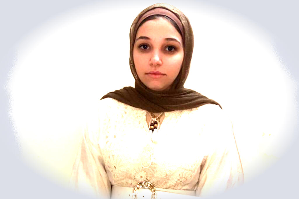 (Bild: Ahed Mohammad Rida Mereb (16), ein Mädchenporträt mit Kopftuch)