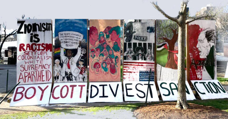DIE APARTHEID-WANDINSTALLATION DER PSC WIRD WÄHREND DER IAW 2022 IM HARVARD-YARD AUSGESTELLT