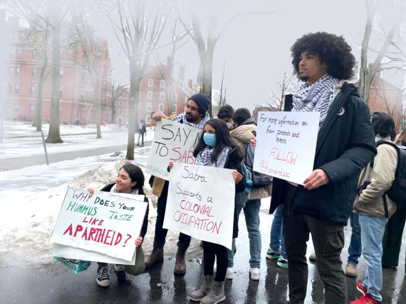 PSC-STUDENTEN FÜHREN EINEN PROTEST AN, DER ZUM BOYKOTT VON SABRA-PRODUKTEN IN DEN SPEISESÄLEN VON HARVARD AUFRUFT