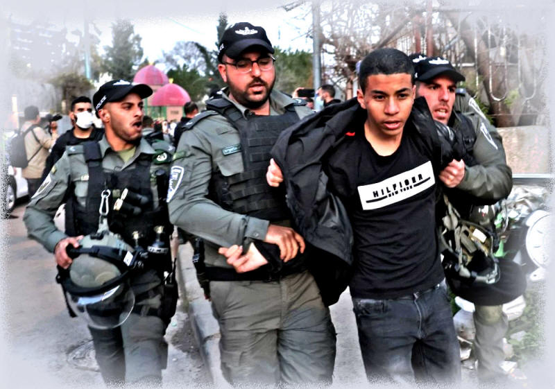 Die jüngste Warnung eines Ex-Regierungsministers an palästinensische Fahnenschwenker vor einer weiteren Vertreibung entlarvt die Lüge, die der Gründung Israels zugrunde liegt Israelische Sicherheitskräfte nehmen einen Demonstranten während einer Demonstration im Brennpunktviertel Sheikh Jarrah im von Israel abgetrennten Ostjerusalem fest, 18. Februar 2022