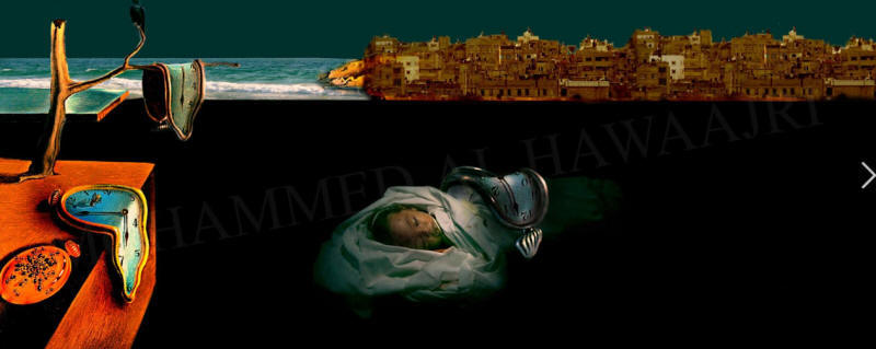 Mohammed Al Hawajri kombiniert in seiner Serie „Guernica Gaza“ Bilder von Angriffen der israelischen Armee auf das Palästinensergebiet mit klassischen Motiven von Millet, Delacroix, Chagall oder van Gogh. Der Serientitel stellt eine Verbindung her zum Gemälde „Guernica“ von Pablo Picasso - es entstand 1937 als Reaktion auf die Zerstörung der spanischen Stadt durch einen Luftangriff der „Legion Condor“ Nazi-Deutschlands.