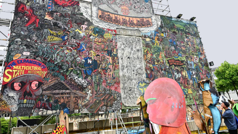 Es ist bedauerlich, dass all diese Bemühungen und großartigen Kunstwerke nun von dem Fall von Taring Padis People's Justice (2002) überschattet werden, der sich am Montag, dem 20. Juni 2022, zuspitzte. Er gipfelte darin, dass das Werk abgedeckt und einen Tag später auf Wunsch des documenta-Aufsichtsrats im Gespräch mit dem documenta-Chef abgehängt wurde.