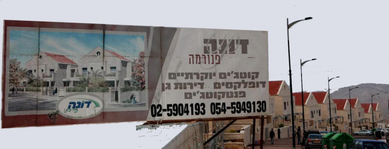 Ein Werbeschild für ein neues Wohnbauprojekt in der Siedlung Maale Adumin im Westjordanland, zwischen Jerusalem und Jericho, am 25. 11. 2009