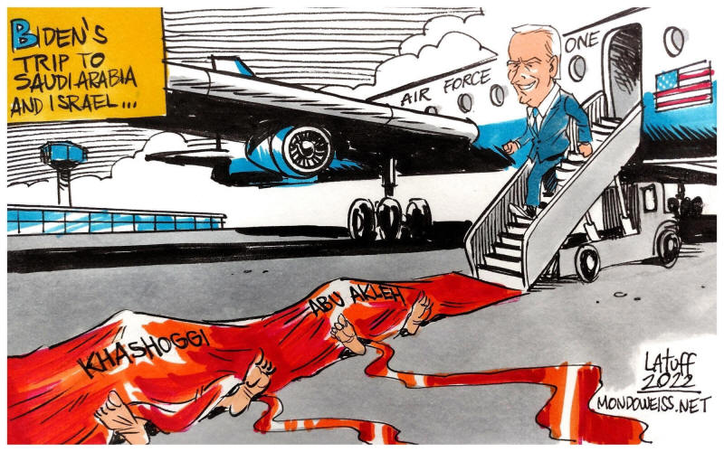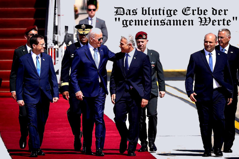 Im Vorfeld seines Besuchs in Israel-Palästina machte Präsident Biden seinen israelischen Amtskollegen klar, dass das Weiße Haus an "Zurückhaltung" interessiert sei. Offenbar lässt sich palästinensisches Blut, das nach dem Besuch des Präsidenten vergossen wird, leichter abwaschen als die zähflüssigere Sorte Blut, die unansehnliche Flecken hinterlässt, wenn sie in den Tagen davor vergossen wird.