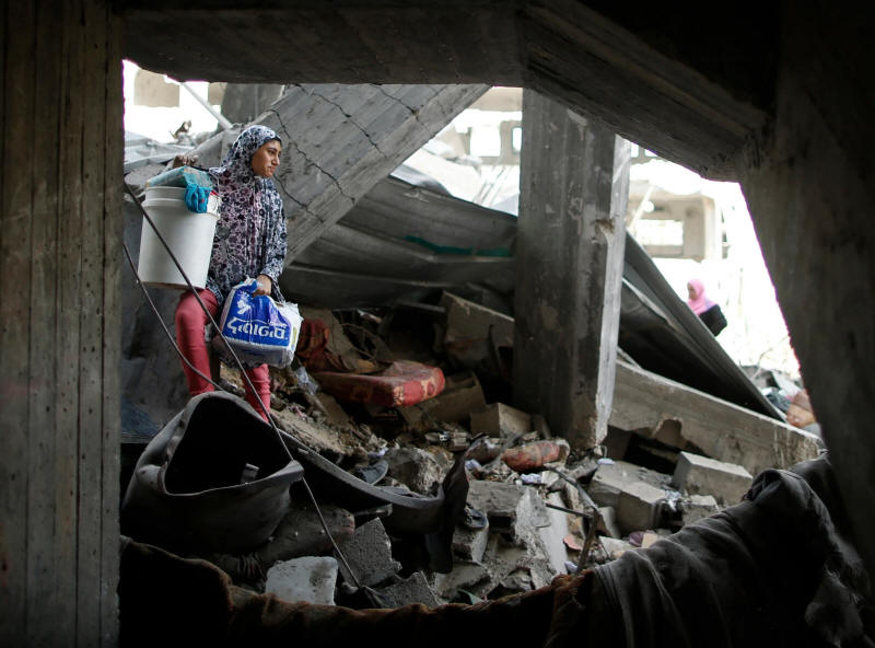 Ein palästinensisches Mädchen trägt ihre Habseligkeiten aus dem zerstörten Haus ihrer Familie im Stadtteil Shujaiya, 26. Juli 2014