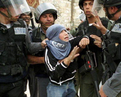 Wie die Unsicherheitskräfte Israels, des Zionismus mit Kinder umgehen.