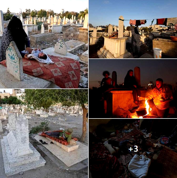 Tragische Bedingungen für Familien im Gazastreifen aufgrund der seit 14 Jahren andauernden israelischen Belagerung, da diese Familien gezwungen waren, auf Friedhöfen zu schlafen, weil es keine Unterkünfte für sie gab