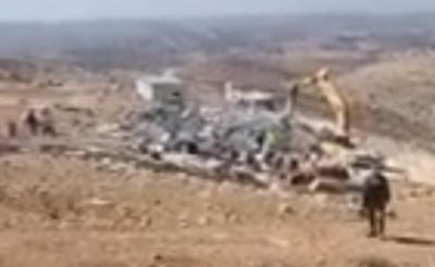 Mehrere Armeejeeps und Bulldozer drangen in Khallet Taha, westlich der Stadt Doura, südwestlich von Hebron, ein und zerstörten ein 100 Quadratmeter großes Haus, nachdem sie die Familie aus dem Haus gezwungen hatten.