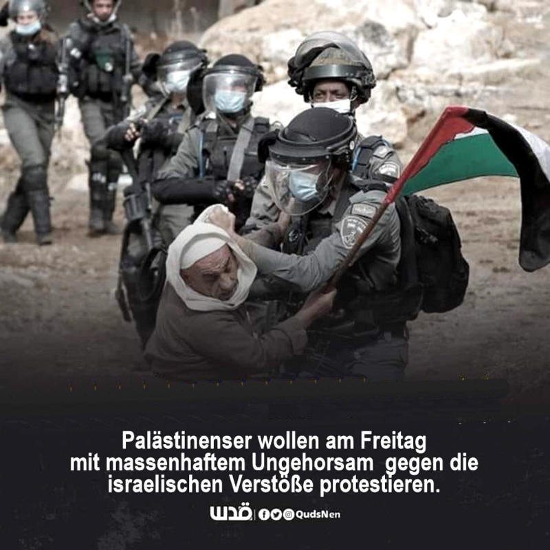 Nationale palästinensische Parteien werden voraussichtlich am kommenden Freitag im gesamten besetzten Westjordanland eine Massenaktion zivilen Ungehorsams durchführen, um gegen die israelischen Übergriffe auf die Al-Aqsa-Moschee und die von "Israel" verhängte Belagerung der Palästinenser im Flüchtlingslager Shuafat zu protestieren. Quelle |