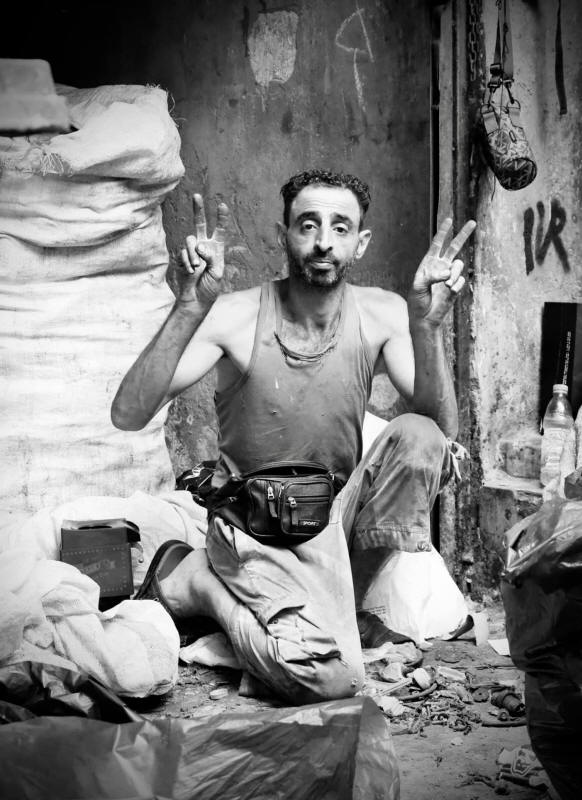 „Gefängnis ist eine faszinierende Maschine in ihrer Kreativität und Expertise und Fähigkeit, Frustration und Gehorsam unter palästinensischen Gefangenen zu erreichen“. Mit bescheidenem Werkzeug, bestehend aus Papier, schwarzen und roten Stiften, einem handgemachten Rollgerät – und Kaffee, produzierte er – wie er glaubt – annähernd 170 Arbeiten. Einige davon waren Geschenke für andere Gefangene, und es gelang ihm auch, 50 andere Stücke während der acht Monate im Gefängnis zwischen November 2021 und Juni 2022 hinauszuschmuggeln. (Quelle: ALJAZEERA)