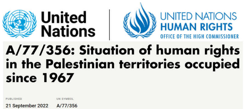 Der Bericht vom 21. September 2022 beschreibt die israelischen Bemühungen, die kollektive Identität und Souveränität der Palästinenser auszulöschen, und verweist auf den Angriff der israelischen Streitkräfte vom 13. Mai 2022 auf palästinensische Sargträger, die während der Beerdigung der Journalistin Shireen Abu Akleh ihre Nationalflagge trugen.