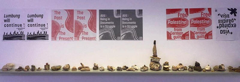 Gleichzeitig räumte ruangrupa einen Vorfall von Antisemitismus ein, der nichts mit den palästinensischen Künstlern zu tun hatte. "People's Justice", eine Installation des indonesischen Künstlerkollektivs Taring Padi, zeigte Abbildungen von Figuren, die traditionelle antisemitische Tropen enthielten, Figuren mit stereotypen antisemitischen Merkmalen wie einen Soldaten mit einem Schweinegesicht und einem Davidstern sowie einen Mann mit Payot (Seitenhaaren) und scharfen Zähnen. Das Gemälde hatte auf einem Gerüst in der Kasseler Innenstadt gehangen, bevor es abgehängt wurde.