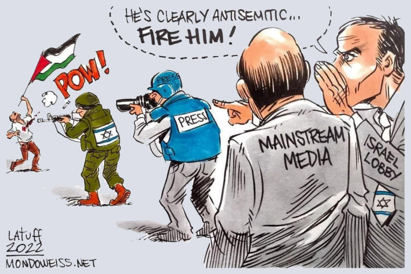 Zionistische "jüdische" Überwachungsgruppen haben Verleumdungskampagnen gestartet, um die Stimmen semitischer palästinensischer Journalisten zum Schweigen zu bringen, was oft dazu führte, dass viele von ihnen ihren Job verloren.