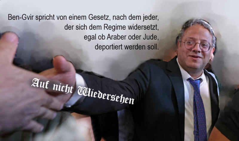 Ben-Gvir spricht von einem Gesetz, nach dem jeder, der sich dem Regime widersetzt, egal ob Araber oder Jude, deportiert werden soll. - Meron Rapoport, politischer Analyst
