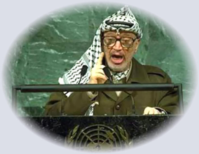 Am 13. November 1974 hielt Abu Ammar vor der UN-Generalversammlung in New York eine Rede im Namen des palästinensischen Volkes, die er mit den Worten abschloss: "Heute bin ich mit einem Olivenzweig und dem Gewehr eines Freiheitskämpfers gekommen. Lasst den Ölzweig nicht aus meiner Hand fallen. Ich wiederhole: Lasst den Ölzweig nicht aus meiner Hand fallen."