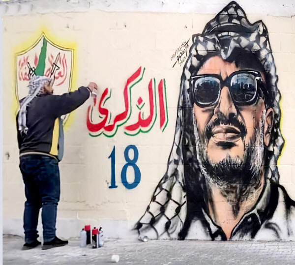 Die zentrale Veranstaltung fand am Arafat-Mausoleum in Ramallah statt, wo Hunderte von Menschen mit gelben Fatah- und Palästina-Fahnen und Arafat-Postern zu Ehren von "Abu Ammar", dem Künstlernamen des verstorbenen Führers der Palästinensischen Befreiungsorganisation, in das Mausoleum strömten.