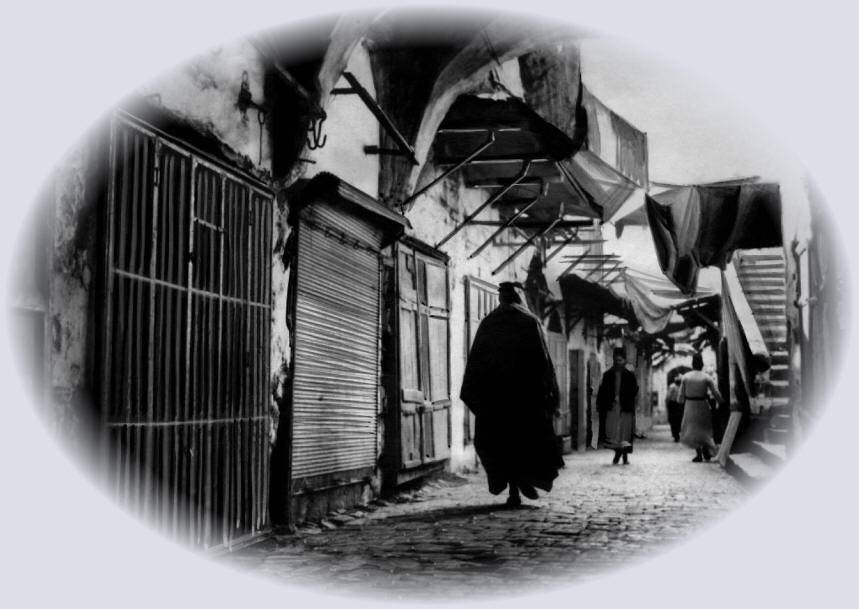 Ein undatiertes Bild, wahrscheinlich aus den 1930er Jahren, zeigt eine Straßenszene in der Altstadt von Jerusalem.