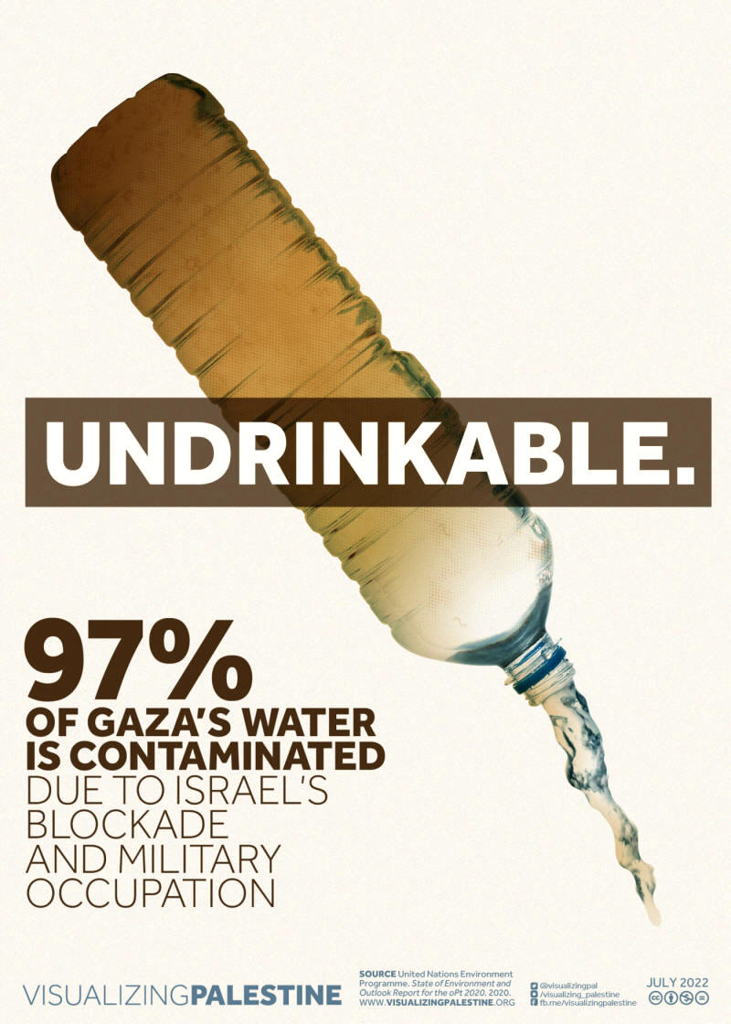 Die israelische Strategie, die palästinensische Bevölkerung einzusperren, den Zugang zu landwirtschaftlichen Flächen und Fischgründen zu beschränken und die Umwelt zu verschmutzen, schafft eine humanitäre Krise, die die Politik der Vertreibung der Palästinenser aus ihrem Heimatland begünstigt, die 74 Jahre nach der Nakba - der erzwungenen Flucht von 700.000 Palästinensern - von 1948 immer noch andauert.