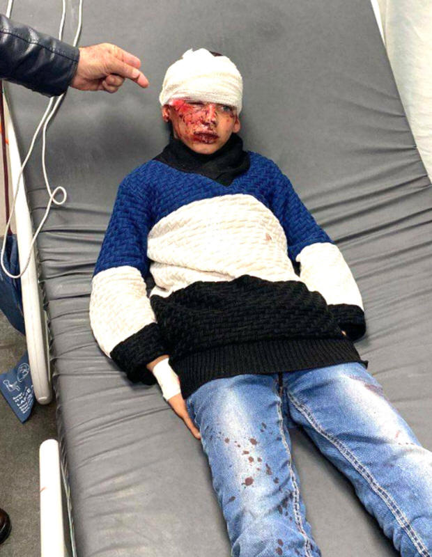 Das verletzte palästinensische Kind, Yazan al-Rajbi, nachdem es von israelischen Siedlern in der Nähe von Hebron angegriffen wurde