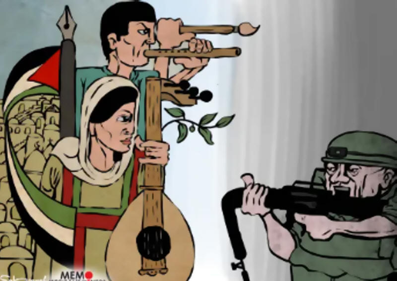 Die palästinensische Kultur und das palästinensische Erbe sind die beste Waffe gegen die Besatzung - Karikatur [Sabaaneh/MiddleEastMonitor]