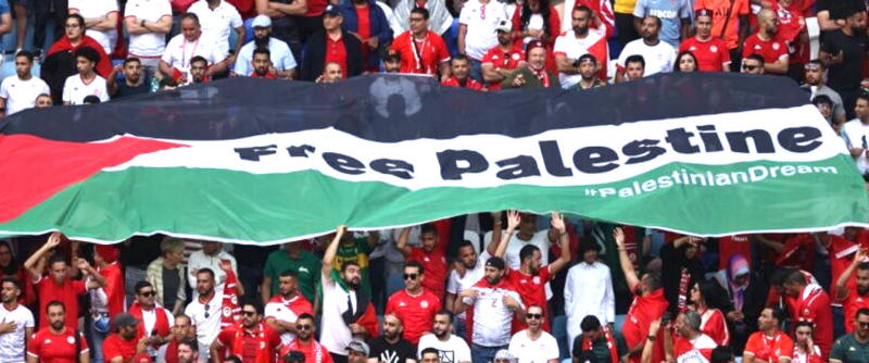 Es gab auch koordinierte öffentliche Solidaritätsbekundungen mit Palästina. Tunesische und marokkanische Fans hielten bei verschiedenen Spielen in der 48. Minute Transparente mit der Aufschrift "Free Palestine" hoch, um an die Nakba von 1948 zu erinnern. Während des gesamten Turniers sah man arabische Fans mit palästinensischen Flaggen, in unterstützenden T-Shirts oder mit der Kaffiyeh.