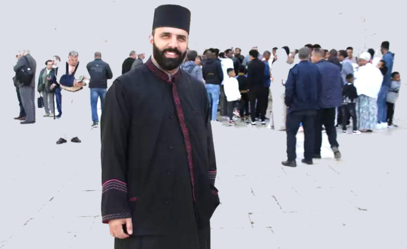 Der griechisch-orthodoxe Priester Issa Thaljieh vor der Geburtskirche in Bethlehem. Er betet gerade in der Weihnachtszeit jeden