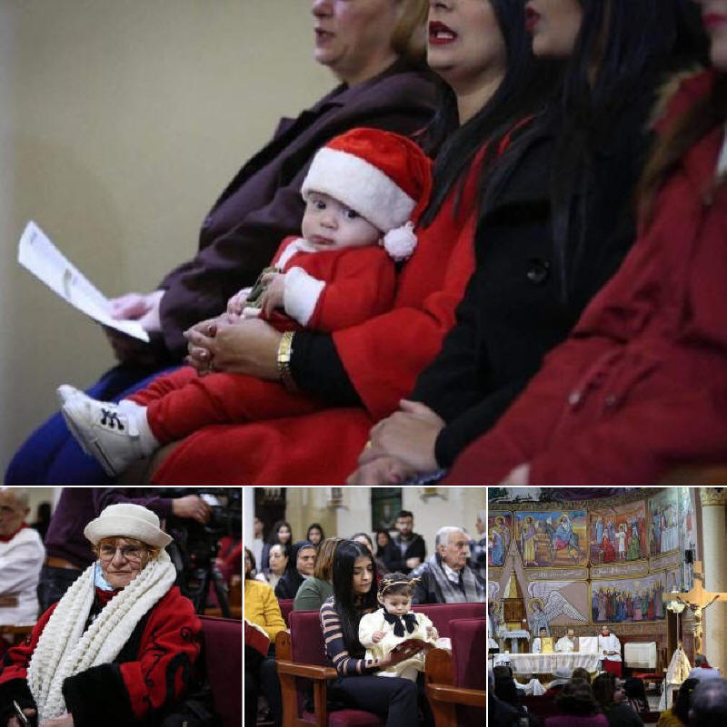 Gläubige in Gaza-Stadt singen heute während des Weihnachtsgottesdienstes in der römisch-katholischen Kirche der Heiligen Familie Hymnen