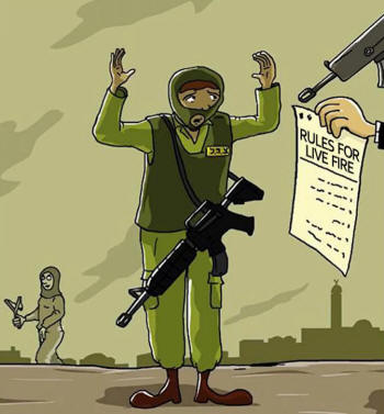 Im Falle von Steinewerfern beispielsweise besagt die Vorschrift, dass ein Beamter "nur dann das Feuer auf eine Person eröffnen darf, bei der eindeutig zu erkennen ist, dass sie Steine wirft oder zu werfen im Begriff ist, und zwar nur dann, wenn eine konkrete und unmittelbare Gefahr besteht und der Steinewerfer das Leben oder das körperliche Wohlbefinden einer Person verletzt".