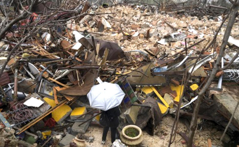 Eine Frau betrachtet die Ruinen eines palästinensischen Hauses, das am 19. Januar im Stadtteil Stadtteil Sheikh Jarrah abgerissen wurde.:
