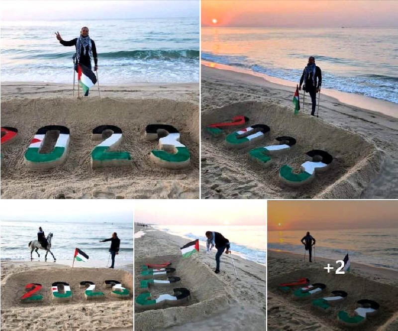 der das letzte Jahr und das zukünftige Jahr auf das Meer von Gaza schreibt