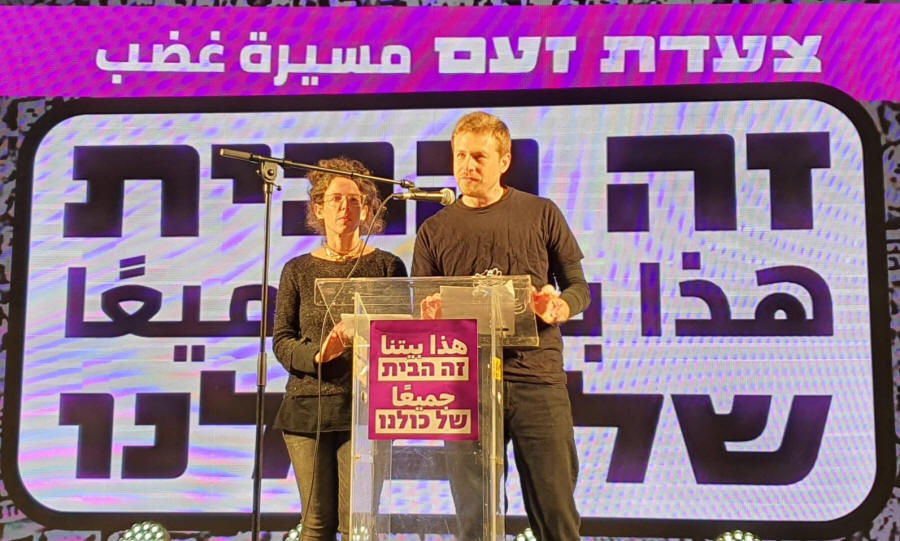 Unsere Co-Direktoren Yael Lotan und Avner Gvaryahu sprachen auf der Hauptbühne und erinnerten die Menge daran, dass der Weg durch den Kampf darin besteht, mit unseren Partnern zusammenzustehen, vereint in Solidarität.