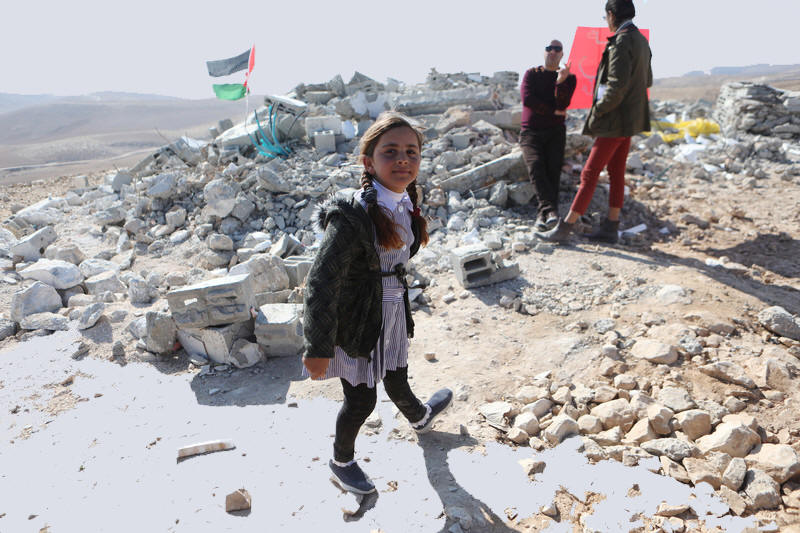 Ein palästinensisches Mädchen steht am 19. Dezember 2022 vor den Trümmern der EU-finanzierten Isfey-Schule in Masafer Yatta, südlich von Hebron im besetzten Westjordanland. Die Schule, in der 32 Schüler unterrichtet wurden, wurde im November von der israelischen Armee gesprengt. Mamoun Wazwaz