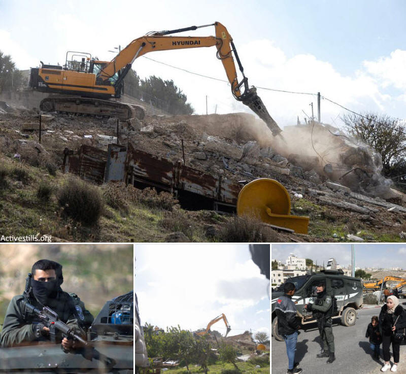 Israelische Kolonialkräfte führen eine Abrissaktion im palästinensischen Viertel Sur Bahir in #Jerusalem durch.