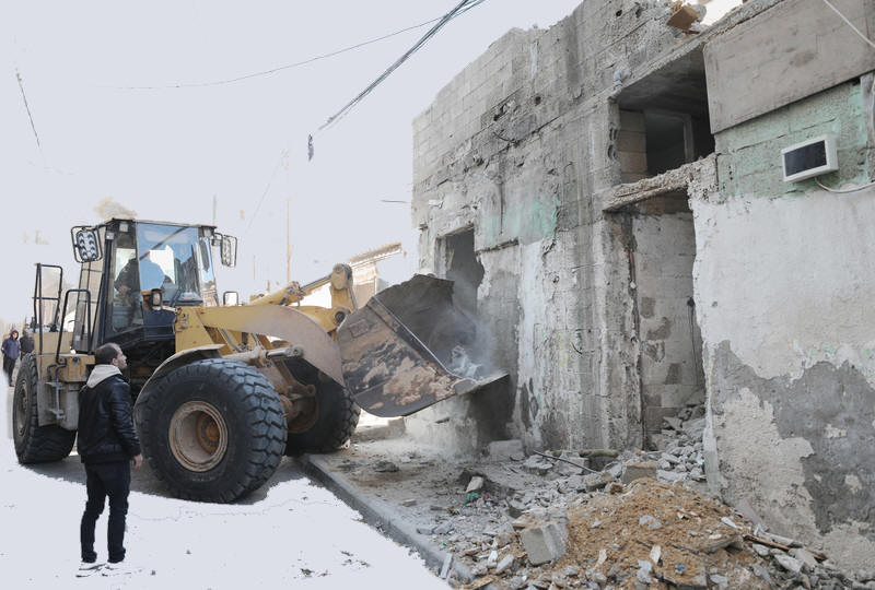 Palästinensische Arbeiter arbeiten am 18. Januar am Abriss von Häusern im Flüchtlingslager Beach westlich von Gaza-Stadt. Das Bauministerium im Gazastreifen begann mit dem Abriss von Häusern im Rahmen eines umstrittenen Plans zur Verbreiterung der Sea Street und zur Verbesserung des Verkehrs im Lager. Mehrere Familien werden dabei vertrieben. Atia Darwish