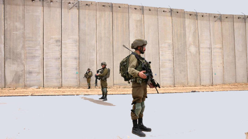 Israelische Soldaten stehen am 7. Dezember 2021 am Zaun entlang der Grenze zum Gazastreifen in der Nähe des Moshav Netiv HaAsara im Süden Israels