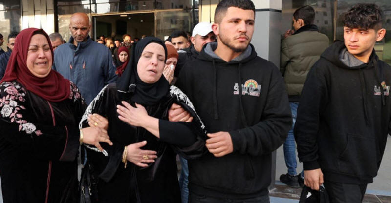 Die Mutter und die Verwandten eines palästinensischen Jungen reagieren, nachdem er am 12. Februar 2023 bei Auseinandersetzungen in der Stadt Dschenin im Westjordanland von israelischen Streitkräften erschossen worden war