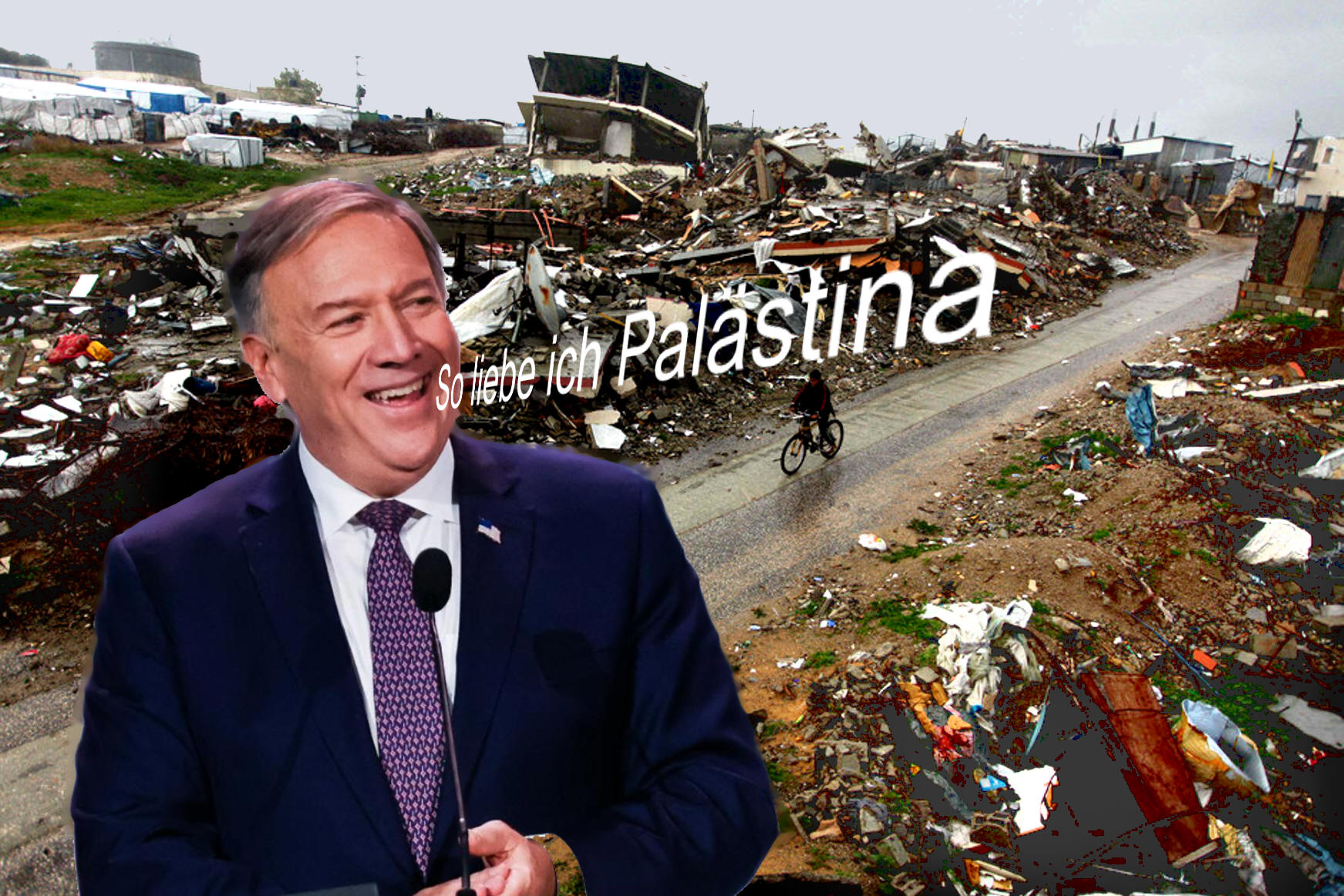 "[Israel] ist keine Besatzungsnation. Als evangelikaler Christ bin ich nach meiner Lektüre der Bibel davon überzeugt, dass dieses Land seit 3.000 Jahren die rechtmäßige Heimat des jüdischen Volkes ist, auch wenn das viele leugnen", sagte Pompeo.