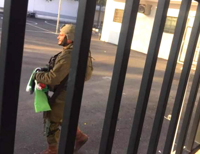 Besatzungstruppen stürmen eine Schule und entfernen die palästinensische Flagge.