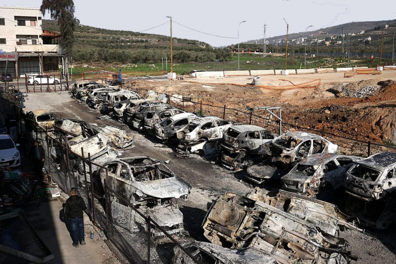 Am Montagmorgen glich Huwara, eine zentral gelegene Stadt, durch die täglich Tausende von Palästinensern und Siedlern reisen, einem Schlachtfeld. Nach Angaben der Stadtverwaltung hatten Siedler acht Häuser in Brand gesteckt, bei 35 weiteren die Fensterscheiben eingeschlagen und 250 Fahrzeuge in Brand gesetzt. Mehr als 120 Menschen wurden verletzt, darunter ein Palästinenser mit einer schweren Kopfwunde, der derzeit in einem Krankenhaus in Nablus liegt. Ein Israeli erschoss Sami Aktash, 37, aus dem nahe gelegenen Dorf Za'atara. Es ist noch unklar, ob er von Siedlern oder Soldaten erschossen wurde.