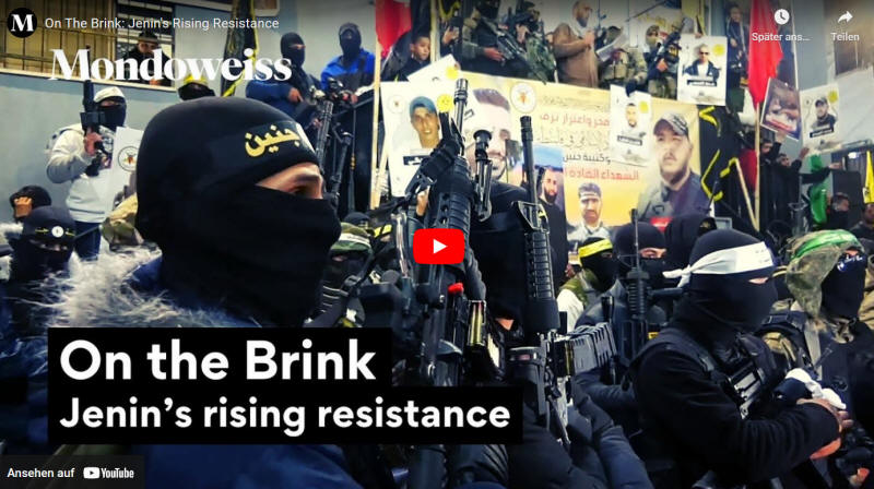 "Die Welt muss wissen, dass wir keine Terroristen sind, wie die [israelische] Besatzung behauptet", sagte ein junger Kämpfer der Jenin-Brigade, einer lokalen Gruppe bewaffneter Kämpfer im Flüchtlingslager von Jenin, gegenüber Mondoweiss. "Wir sind Kämpfer im Namen Gottes. Wir sind aus dem Leib unserer Mütter in diese Welt gekommen, um diesen Besatzer zu bekämpfen, der unsere Religion, unsere Bräuche und unsere Traditionen gestohlen und unsere Väter und Brüder getötet hat." "Die Welt muss wissen, dass wir keine Terroristen sind. Die Besatzung ist der einzige Terrorist auf dieser Welt", sagte er.