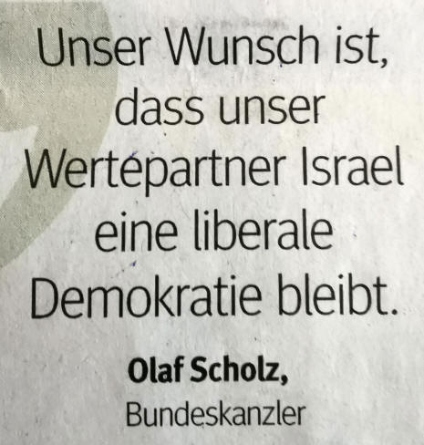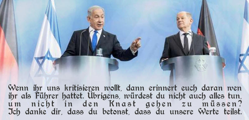 Allerdings gab es höflichere Möglichkeiten. Man könnte sich die Formulierungen ausdenken: „Verehrter, lieber Freund, Sie wissen, dass Deutschland immer solidarisch mit Israel bleibt, auch in schwierigen Zeiten. Wir würden aber verstehen, wenn Sie sich entscheiden würden, Ihren geplanten Staatsbesuch zu verschieben. Sie werden derzeit dringend zuhause gebraucht. mehr >>>