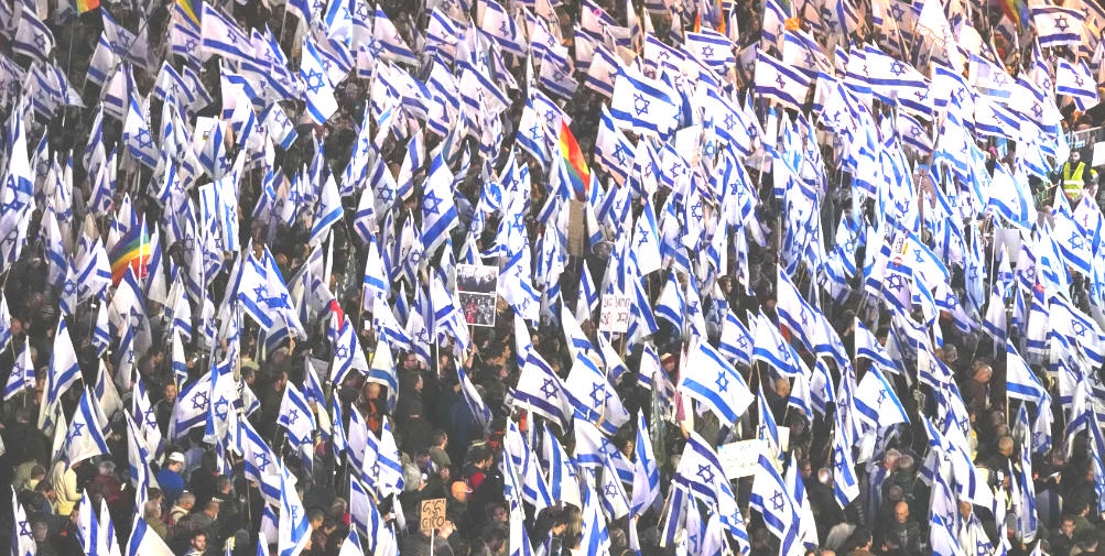 Zum elften Mal in Folge gingen am Samstag Hunderttausende in Tel Aviv gegen die geplante Reform des Justizsystems auf die Straße. (Foto: Tsafrir Abayov)
