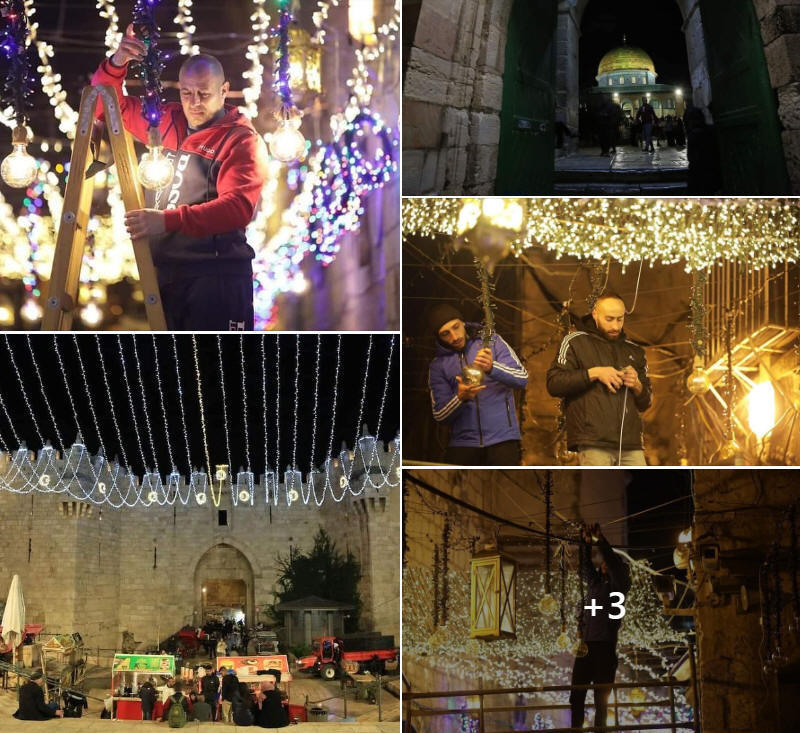Bürger schmücken die Stadt Jerusalem mit dem Beginn des Ramadan Monats.