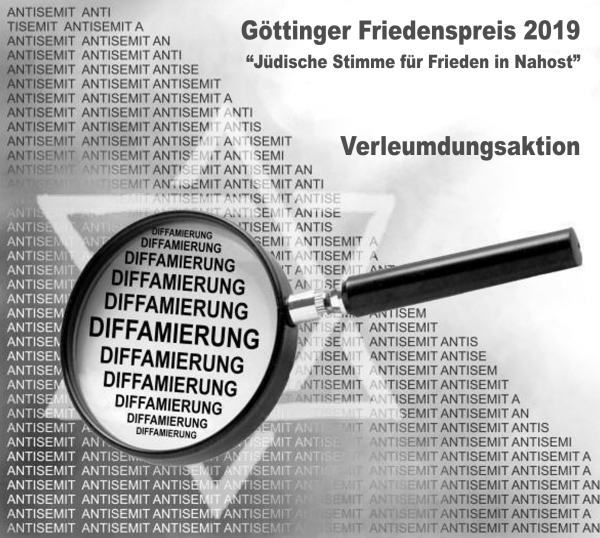 angesichts der geplanten Preisverleihung am 9.3.2019 an eine BDS-Vereinigung „Jüdische Stimme für gerechten Frieden in Nahost“ durch die Röhl-Stiftung (Göttinger Friedenspreis) muss ich als Mitglied des Stadtrates Göttingen, Alumna der Universität Göttingen und Mitglied des Verwaltungsrates der Sparkasse dringend dazu auffordern, von der Verleihung des Preises abzusehen und die Preisverleihung nicht durch die Sparkasse, Stadt und Universität zu unterstützen.
